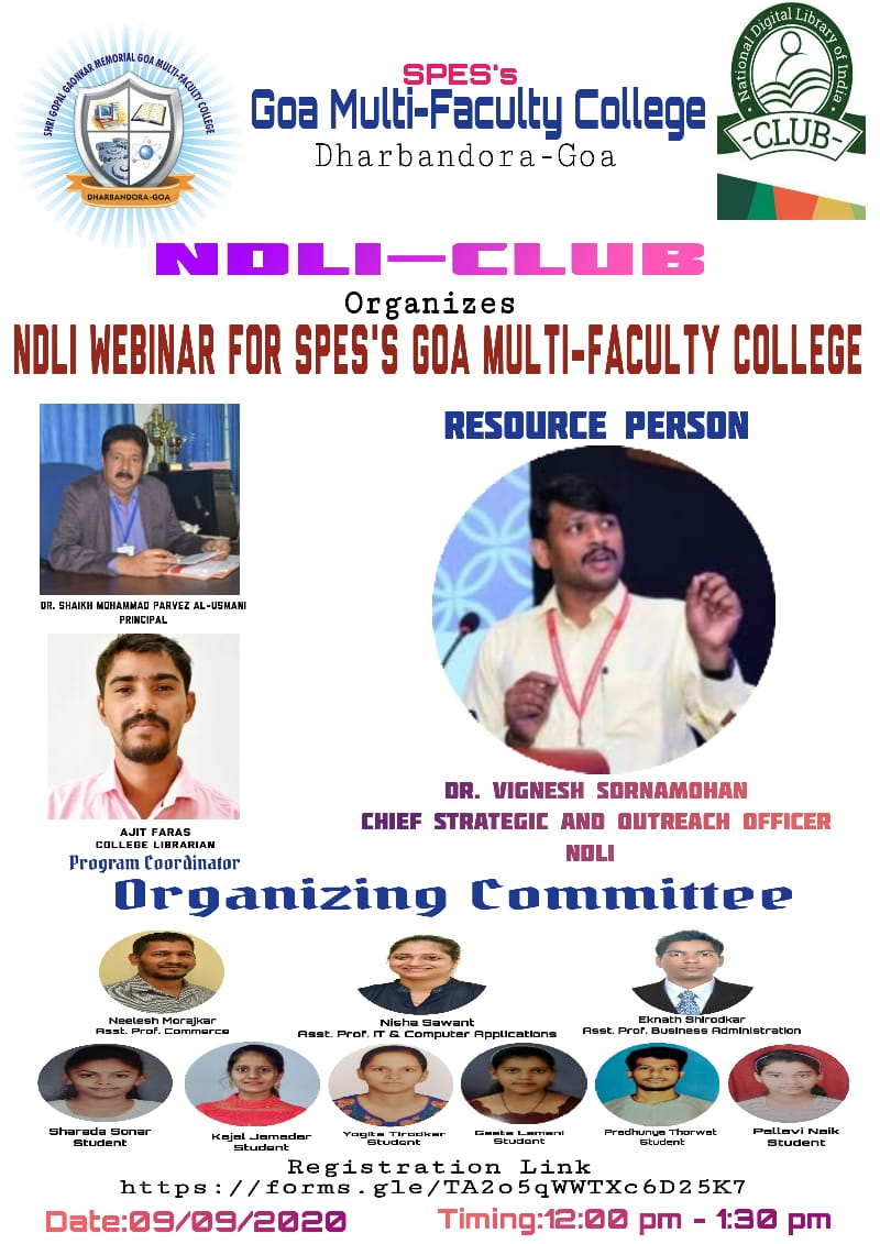 NDLI Webinar for SPES’s Goa Multi-Faculty College