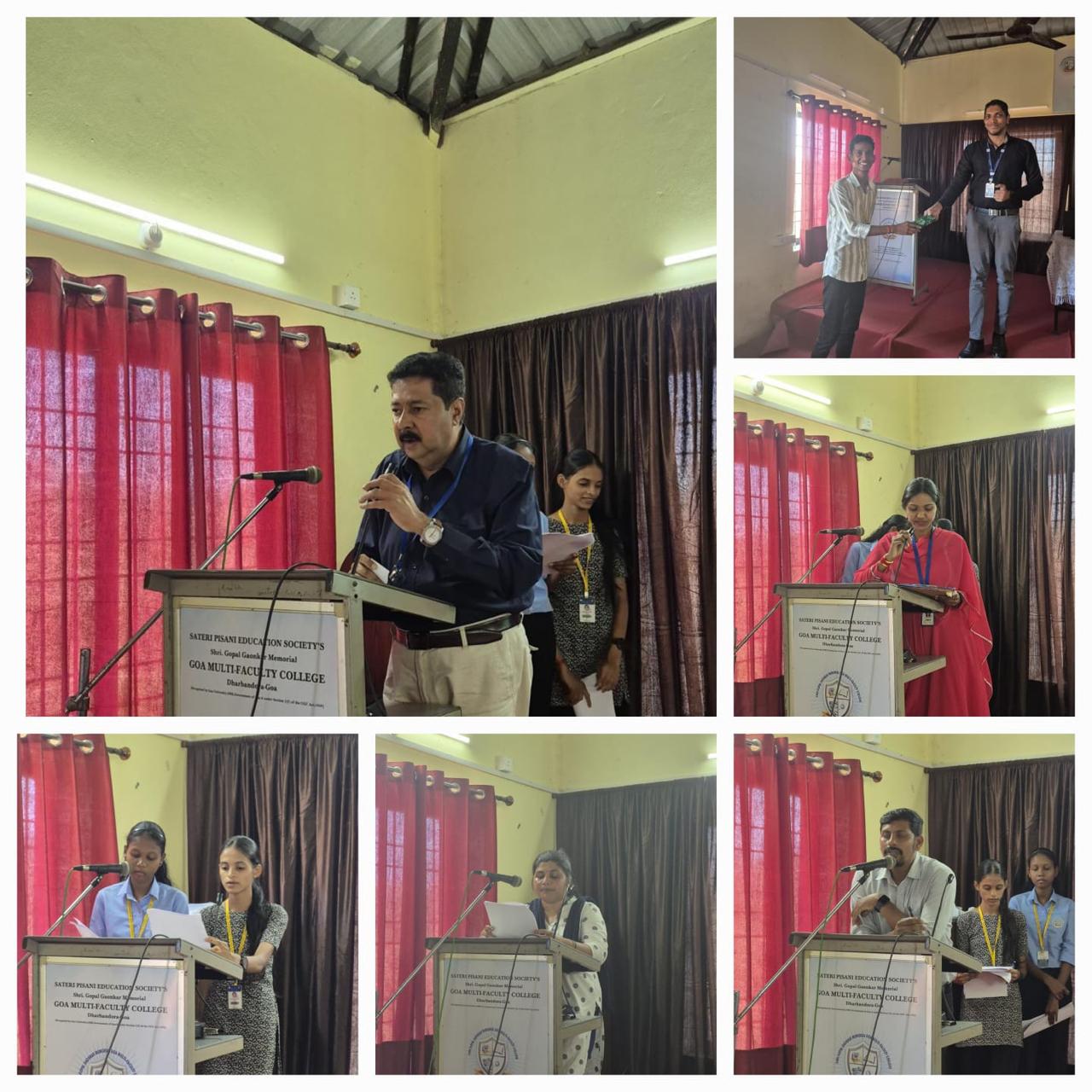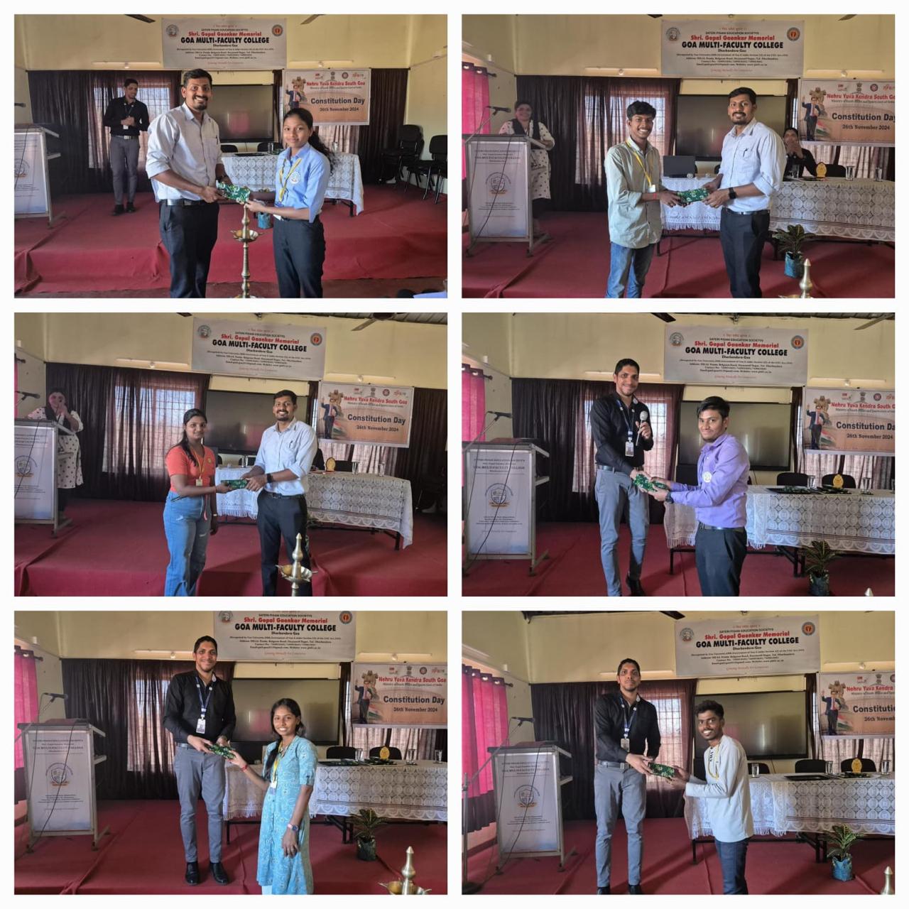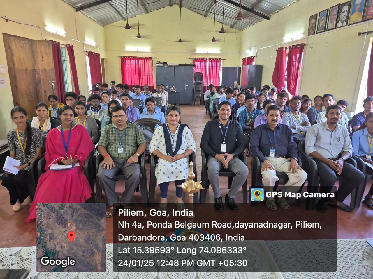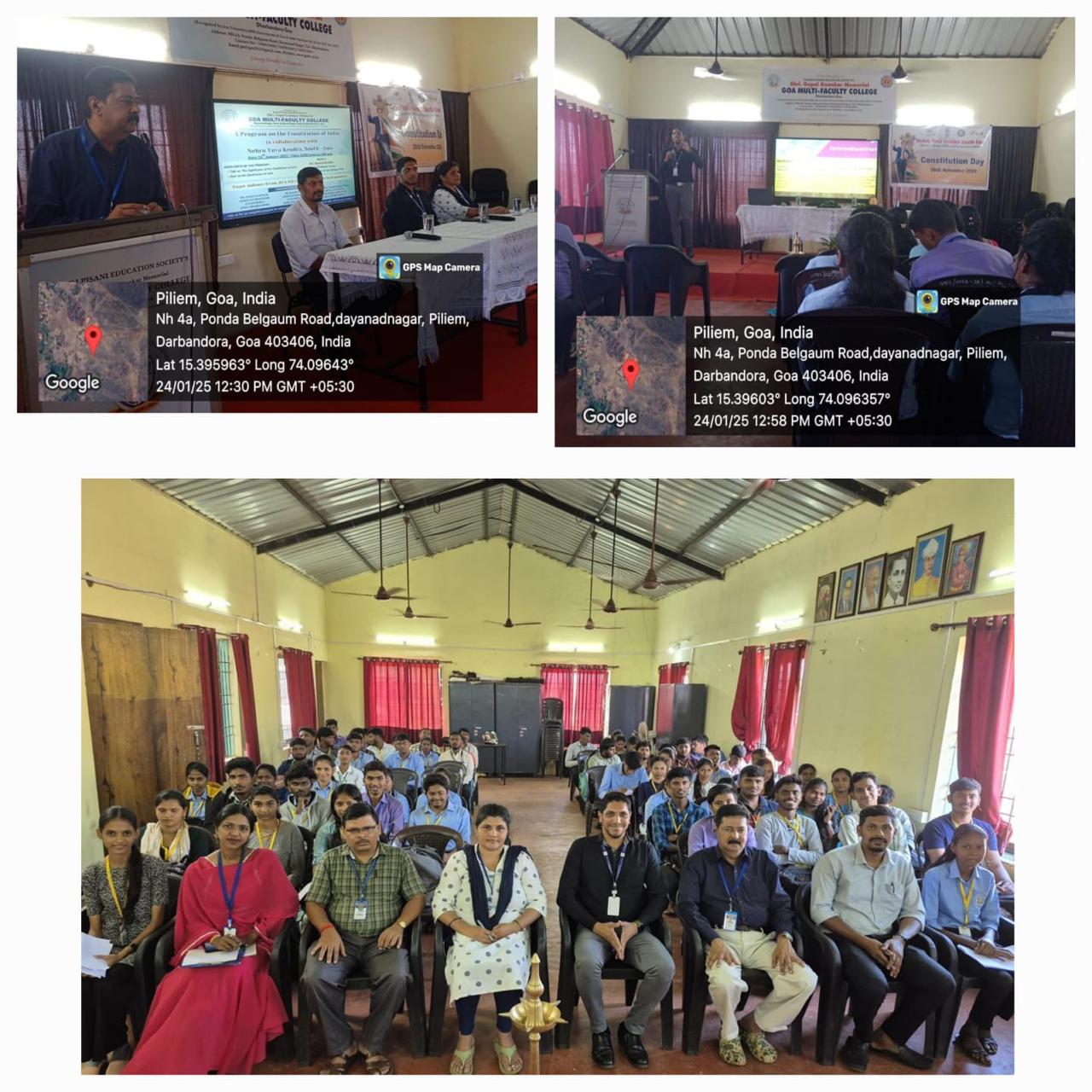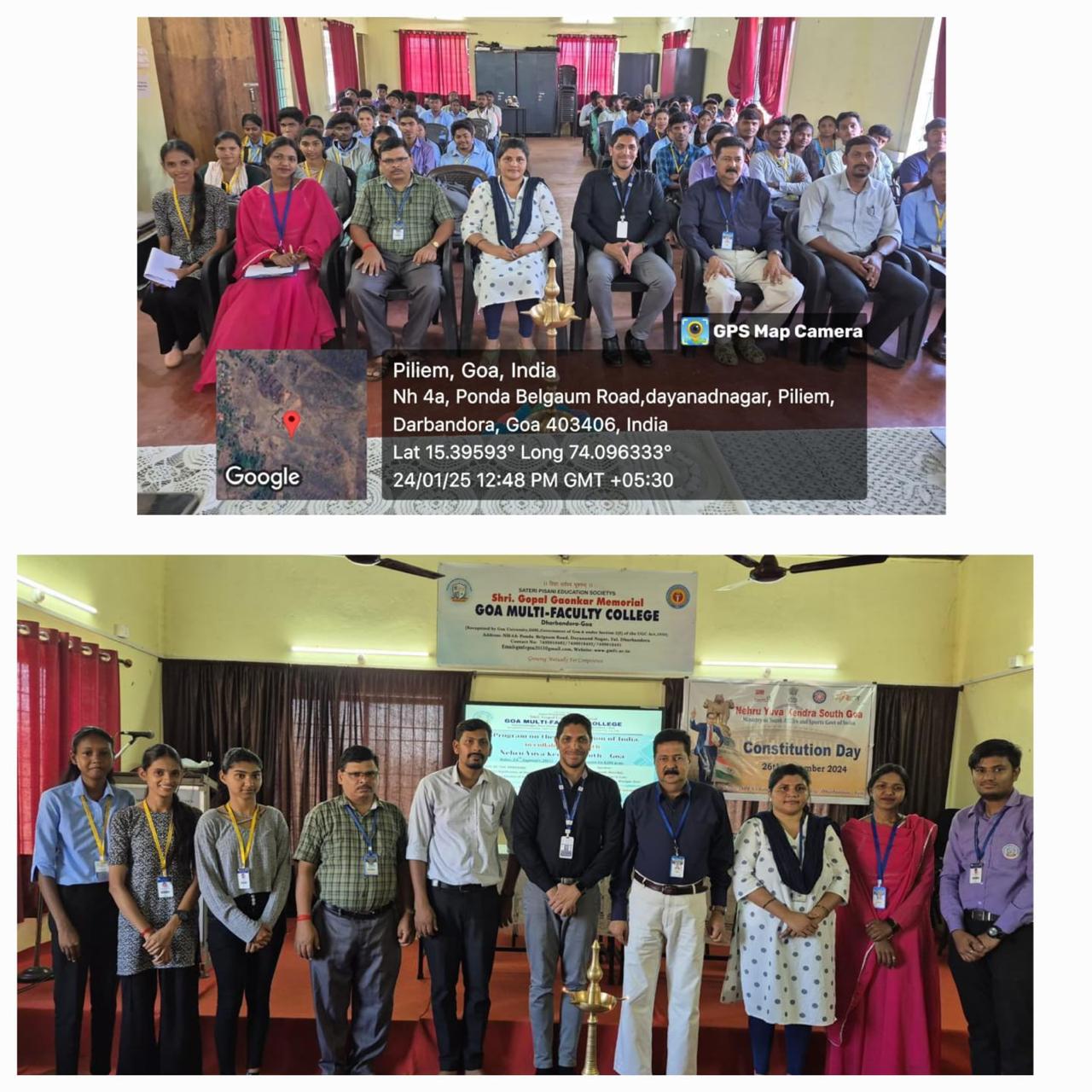 On 24th January 2025, a program on the Constitution of India was held in collaboration with Nehru Yuva Kendra, South Goa, for B.Com., B.C.A., and B.B.A. students and staff. The event featured an insightful talk by Mr. Sapresh Devidas, Assistant Professor at G.R. Kare College of Law, Margao-Goa, followed by an engaging quiz. This initiative enhanced understanding of the Constitution and its core values, while fostering civic responsibility among participants.