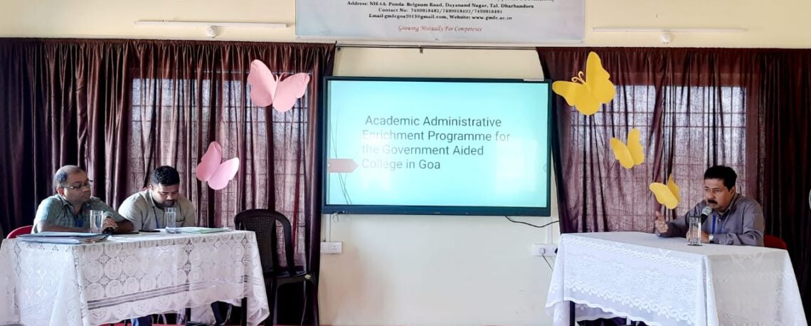 A session on “Academic Administrative Enrichment Programme for the Government Aided Colleges in Goa” was conducted by Prof. (Dr.) Shaikh Mohammad Parvez Al-Usmani, Professor and Principal, Mr. Praneet Shigaonkar (Accountant), & Mr. Prassad Kamat (Head Clerk) on 15th March 2024 (Friday) from 12.30 p.m. to 1.30 p.m. in the College Hall, to disseminate the information afforded to the college official during the session, as instructed by the Directorate of Higher Education, Alto-Porvorim, Goa.