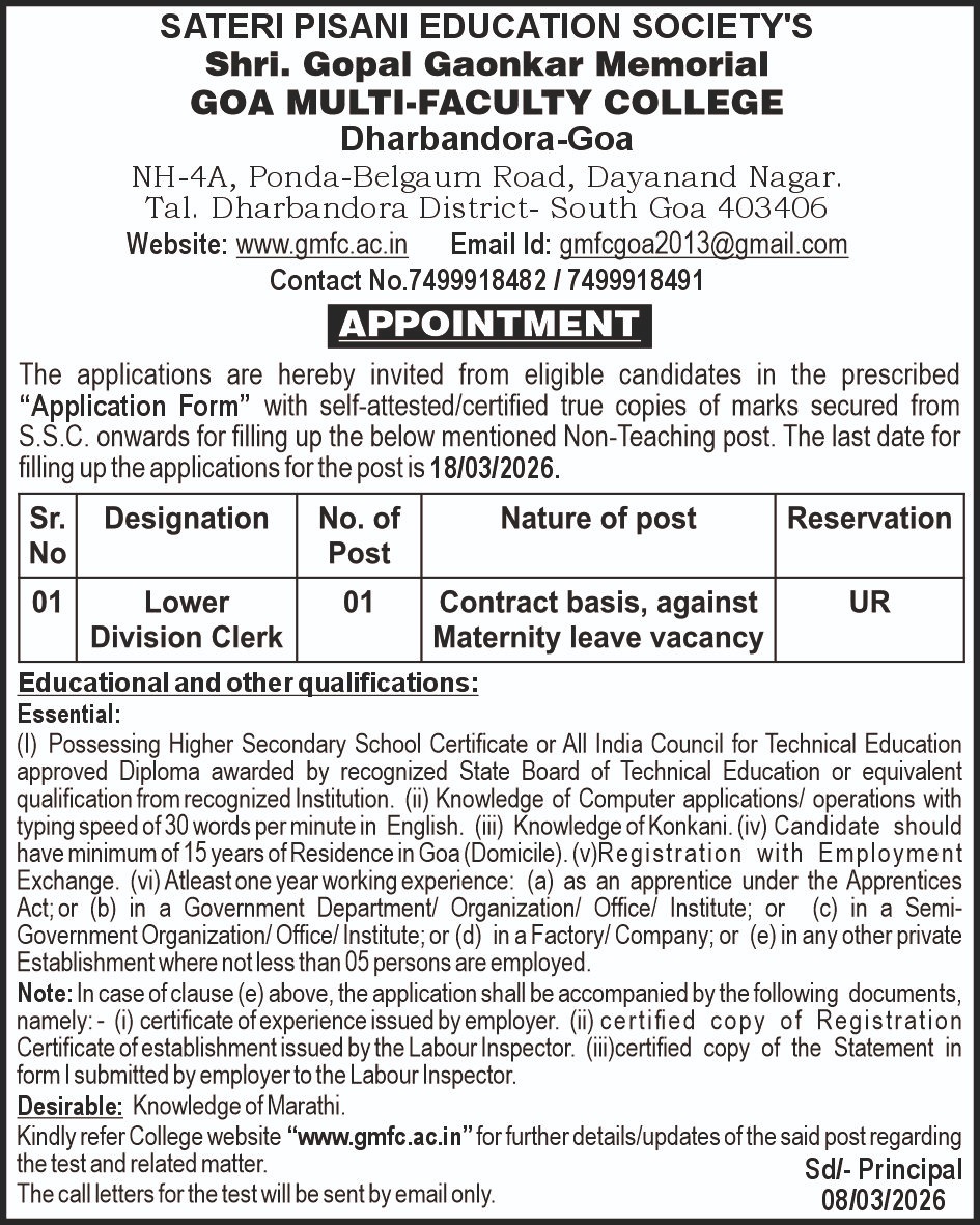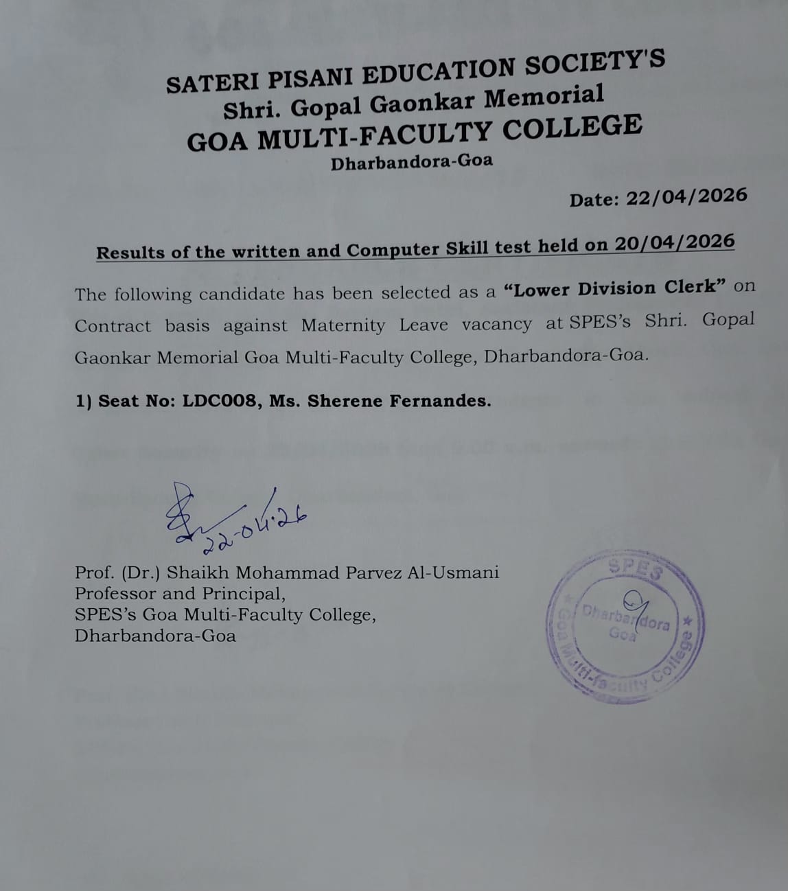 Recognised by Goa University, DHE, Government of Goa & under Section 2(f) of the UGC Act, 1956