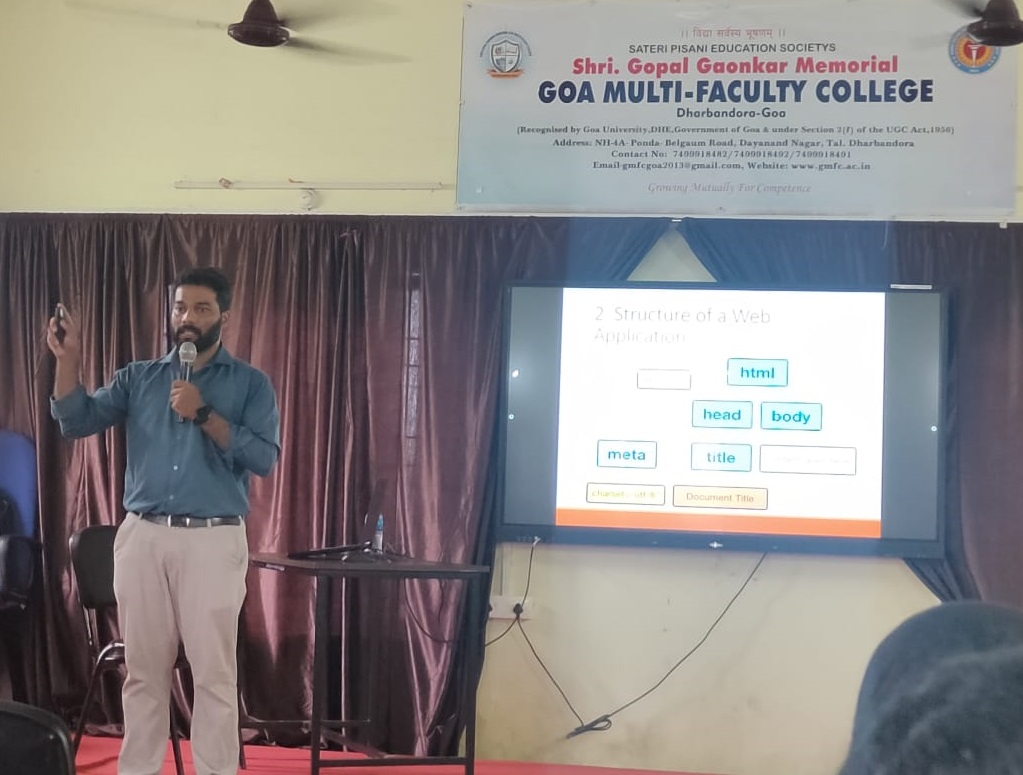Department of IT & Computer Applications conducted a session on ‘Web Design and Development Simplified’ for FYBCA students as a part of Induction Program on 12th July 2025. Mr. Mayur Naik, Asst. Professor, Govt. College, Quepem was the resource person.
