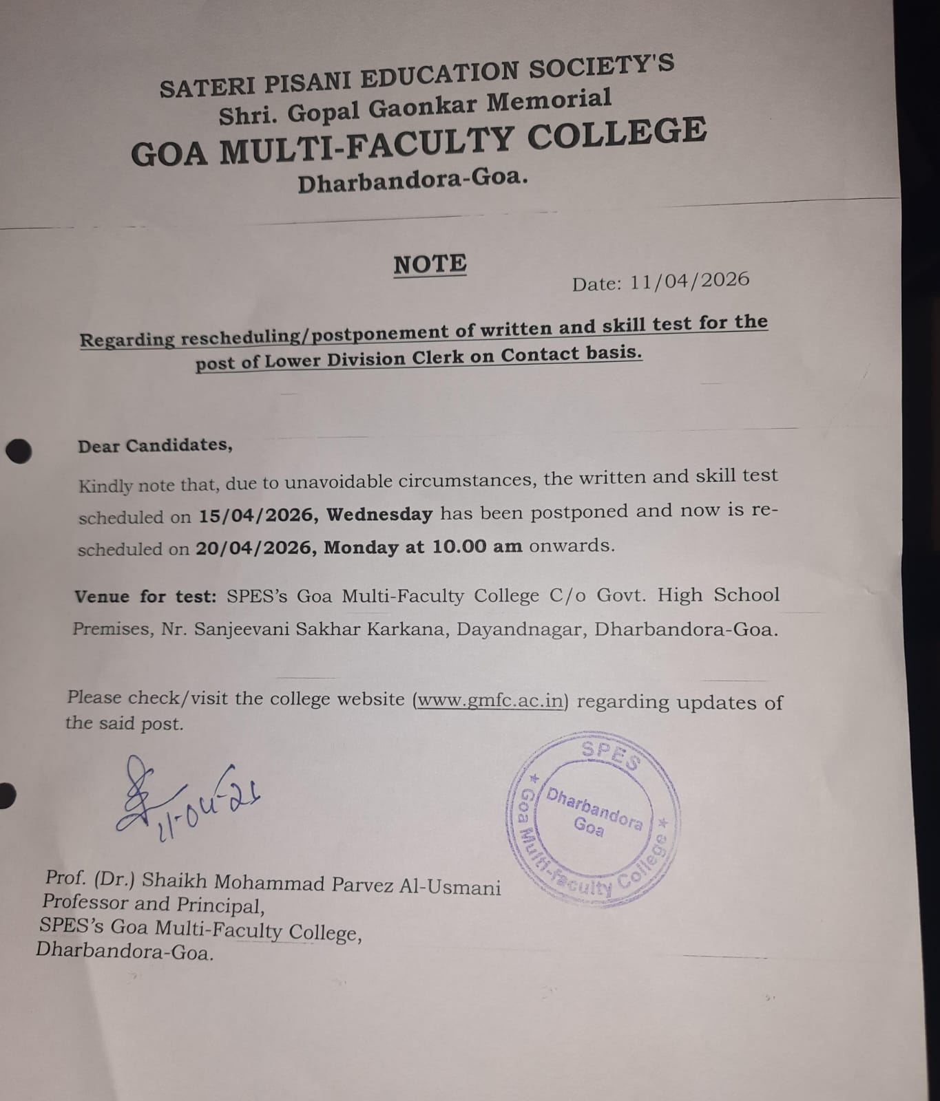 Recognised by Goa University, DHE, Government of Goa & under Section 2(f) of the UGC Act, 1956