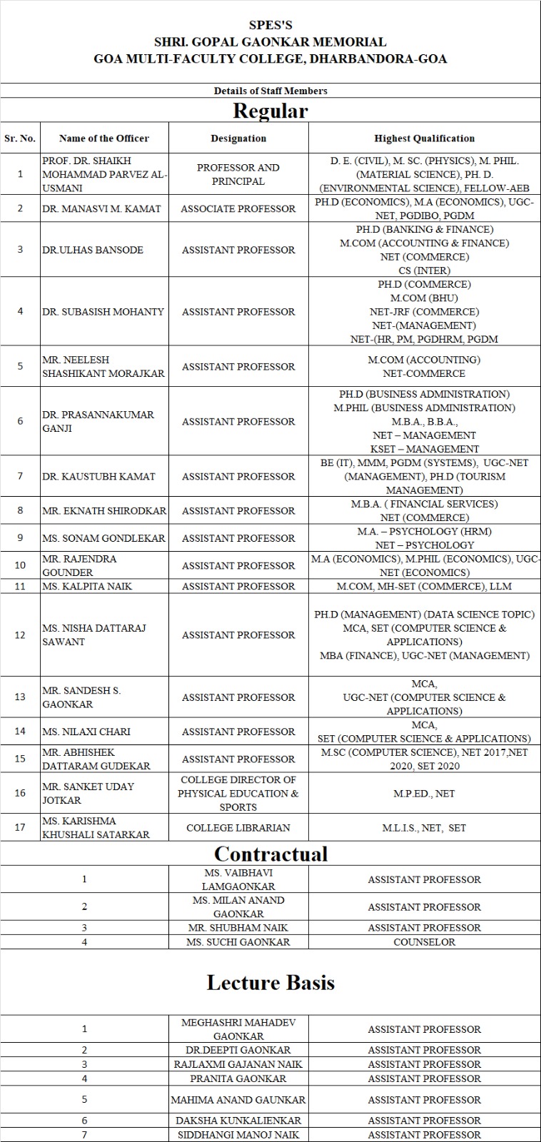 Recognised by Goa University, DHE, Government of Goa & under Section 2(f) of the UGC Act, 1956